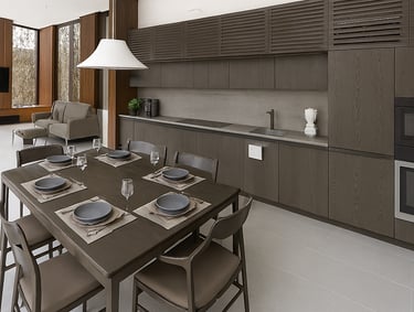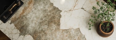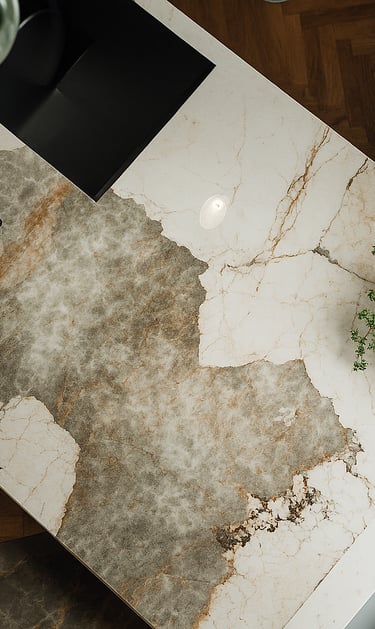 Con cientos de colores sólidos, acabados pétreos y vetas inimaginables en grandes formatos y diversos espesores, las superficies de permiten realizar cualquier despiece, creando patrones únicos para suelos de la cocina.